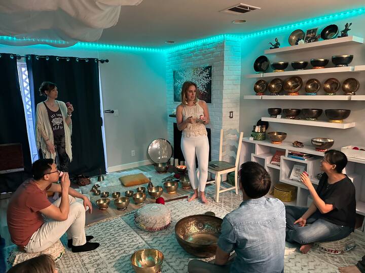 Explore o espaço do Sukha Sound Healing Studio com mais de cinco dúzias de tigelas cantantes do Himalaia e receba orientação personalizada sobre as quatro maneiras de tocar uma tigela cantante, como se conectar com sua energia para a cura e como escolher a tigela cantante que é melhor para sua cura e para você tocar para os outros. Apenas no estúdio de Santa Mônica, não para viagens, a menos que você envie uma mensagem primeiro para coordenar.