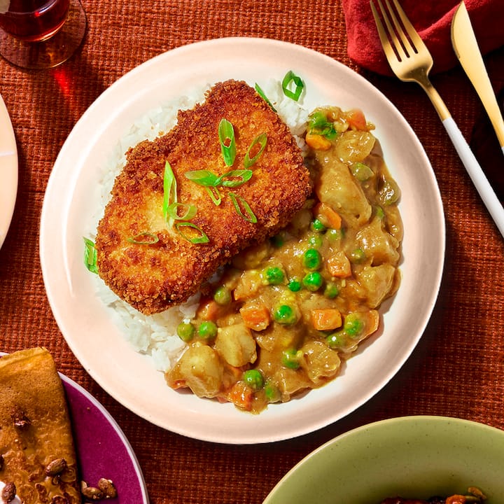 Costeleta de frango crocante em panko servida com curry de vegetais rico e cozido lentamente e arroz cozido no vapor. Uma bomba de conforto aconchegante, crocante e com uma profundidade séria. Inclui 1 refeição de frango Katsu Curry por hóspede.