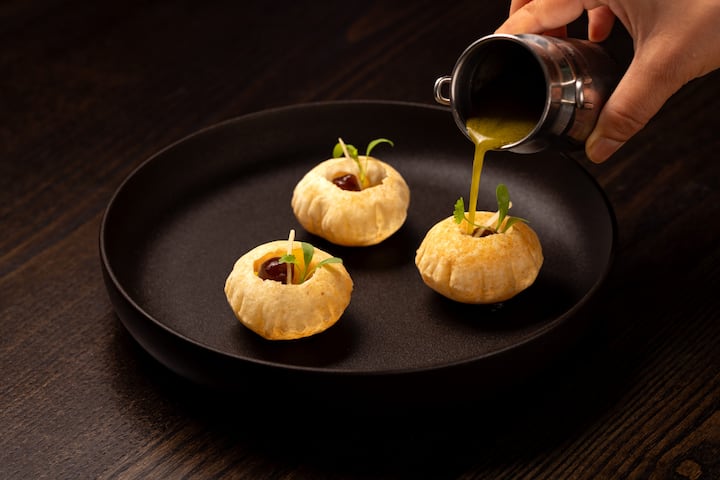Experiência divertida e interativa de comida de rua indiana com pani puri preparado na hora e servido por um chef particular do Aussie Nukkad.