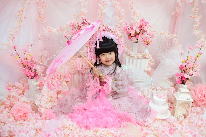Sessão de fotos para bebês e crianças com quimono (também em inglês) Desfrute de lindas fotos com tema de sakura o ano todo. As sessões em estúdio interno são seguras e protegidas contra intempéries para famílias que viajam ao Japão.