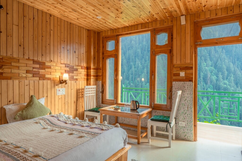 Serene Private Room with Valley View | Jibhi