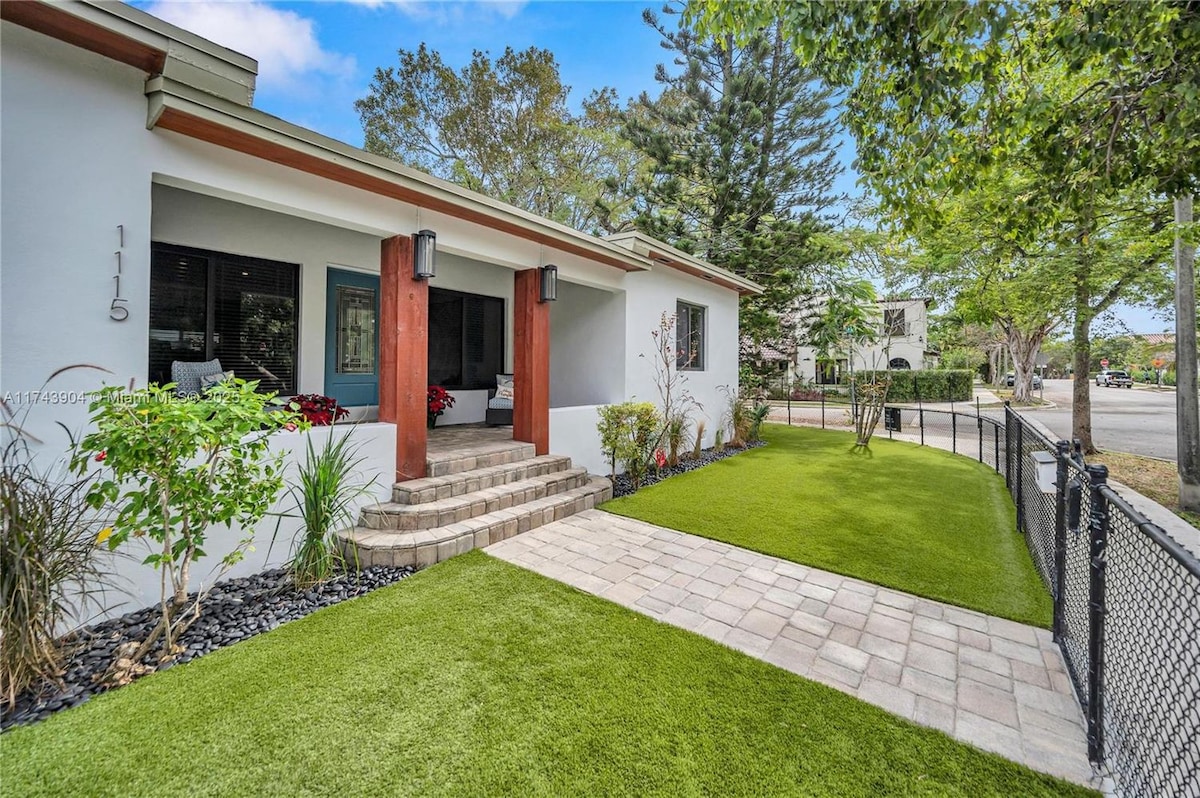 103 anos com um visual novo e fresco! Venha, acabamos de renovar nossos jardins! Relaxe nesta espaçosa casa de campo de um quarto recentemente renovada separada da casa principal com sua própria sala de estar e cozinha. Cerque-se de vegetação e jardins tranquilos enquanto está a poucos passos do coração das galerias de arte e restaurantes da Calle Ocho. Padaria local, mercearia e lavanderia estão ao virar da esquina à sua conveniência. Oferecemos café, chá , 2 garrafas de água, lanches e estacionamento de rua gratuito.