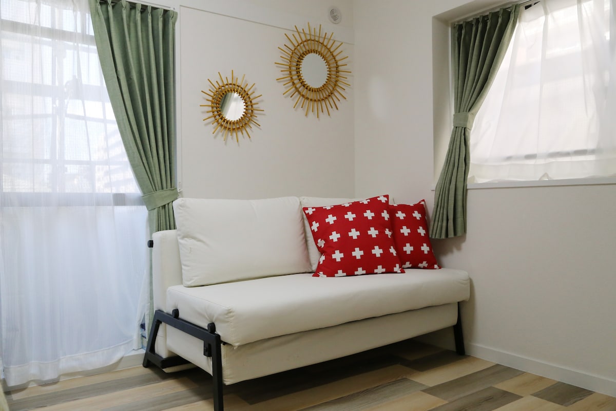 YouTube Netflixも見る事ができます。 都営新宿線曙橋まで徒歩3分です。 通り沿いには、たくさんの飲食店がございます。 近所にはスーパーマーケット、コンビニエンスストア何でもあります。 ダイソンのドライヤーがあります。 4階でエレベーターはありませんが、チェックインの時間が合えば手伝います。 道路沿いのため少し騒音があります。気になる方の為に耳栓を用意してます。 部屋の中は禁煙です。しかしバルコニーでタバコを吸うことができます。 その他、下記のものをご用意しております。 - Wi-Fi - シャンプー、コンディショナー、ボディソープ、ハンドソープ - 調理器具、冷蔵庫、電子レンジ、電気ケトル、食器類 - アイロン -髪に使用するストレートアイロン - エアコン -バルコニー -netfrix32インチテレビ ・日本の法律によりチェックイン迄に宿泊者全員のパスポート提出をお願いしてます。 ・ゴミ回収は朝9時です。 火曜・金曜は燃やすゴミ 、木曜 はペットボトル、ビン、缶 です。ゴミの分別をしない事(燃えるゴミとペットボトルを一緒に出す事等)は禁止です。