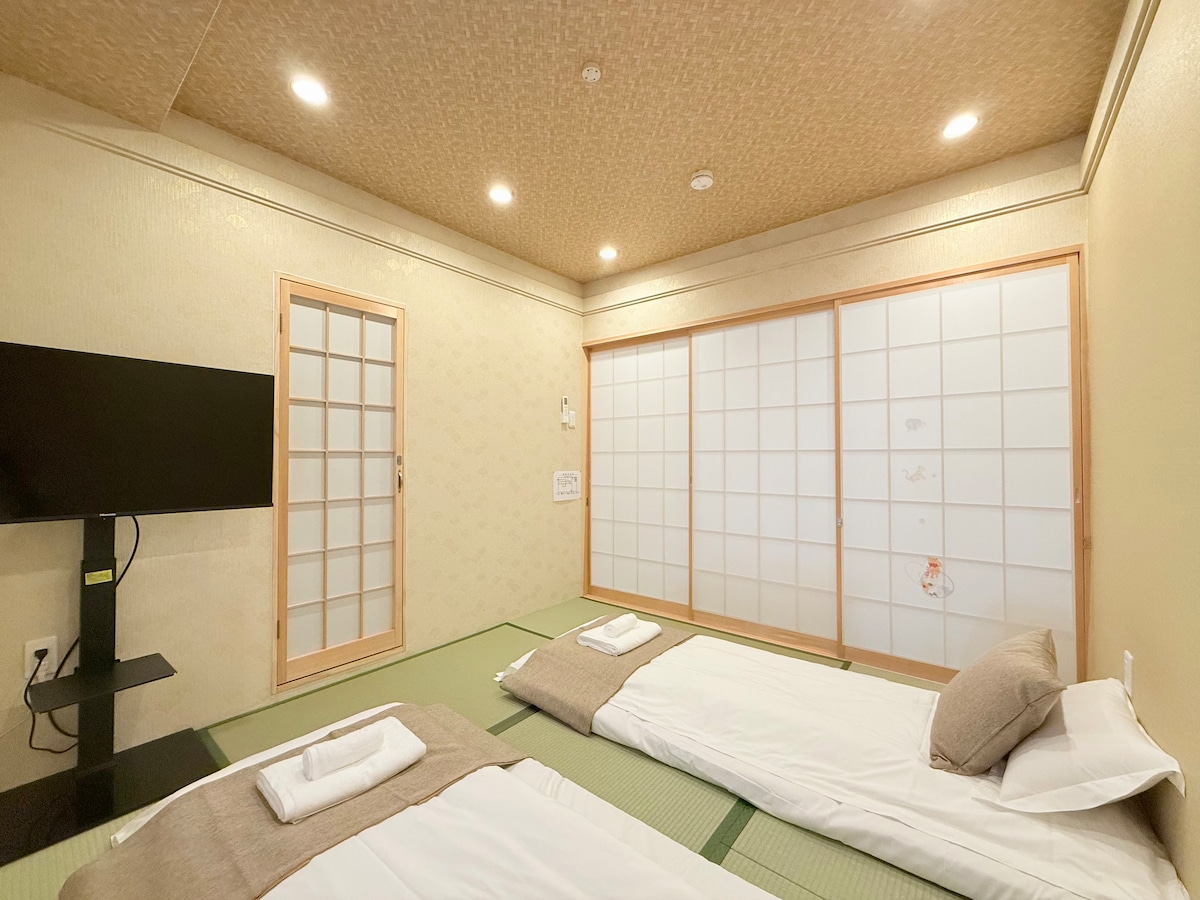 Estadia em família|8Pax|Metro 3min|Estacionamento gratuito|Perto de Namba