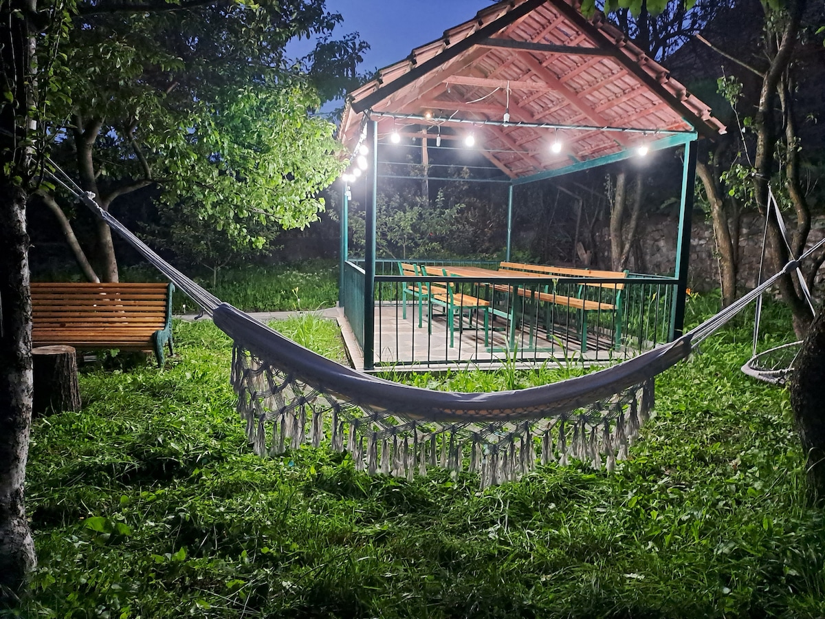 Небольшой дом в Иджеване — ваш отдых на лоне природы . Представьте: вы просыпаетесь под пение птиц, пьёте утренний кофе на свежем воздухе в тени деревьев, читаете книгу в гамаке․ Во дворе есть кролики, качели, беседка и мангал для шашлыка. Домик рассчитан на 2–3 человек. Отапливается уютной печкой на дровах, еще есть электрическое отопление. Здесь вы сможете не только насладиться теплом и атмосферой, но и приготовить картофель на печке. В саду находится только этот домик.