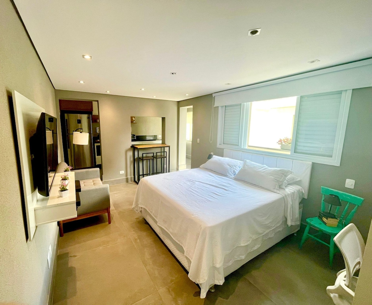 Estúdio mobiliado novinho em folha em um prédio moderno, que combina charme rústico com um toque contemporâneo. Aconchegante e bem equipado, conta com Wi-Fi, ar-condicionado, TV e cozinha completa. O prédio oferece piscina, academia, espaço de coworking, lavanderia e minimercado, trazendo ainda mais praticidade para a sua estadia. Perfeito para quem busca conforto, estilo e uma ótima localização para trabalho ou lazer em São Paulo!