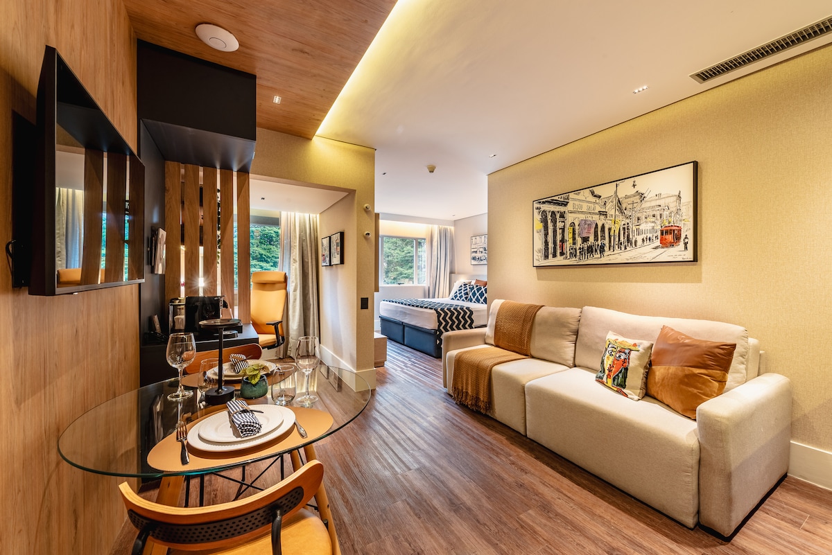No último andar do Copan, este apartamento é um tributo às mulheres do modernismo brasileiro, como Pagu, Anita Malfatti e Tarsila do Amaral. Com uma atmosfera artística e acolhedora, o espaço combina design, história e personalidade. A cama king size convida ao descanso absoluto, enquanto as amplas janelas revelam um pôr do sol inesquecível sobre a cidade — um espetáculo diário que transforma cada estadia em experiência única.