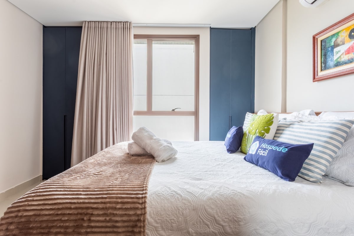 Aproveite uma estadia sofisticada no CA 2, a poucos passos do Shopping Iguatemi e Deck Norte. Este studio planejado une marcenaria moderna e praticidade: Quarto: Cama queen, iluminação LED e bancada de trabalho. Cozinha: Equipada com cooktop, micro-ondas e frigobar e canto alemão para refeições . Lazer: Smart TV. Destaque: Janela panorâmica com vista livre e relaxante. Segurança e silêncio a apenas 15 min do centro de Brasília.