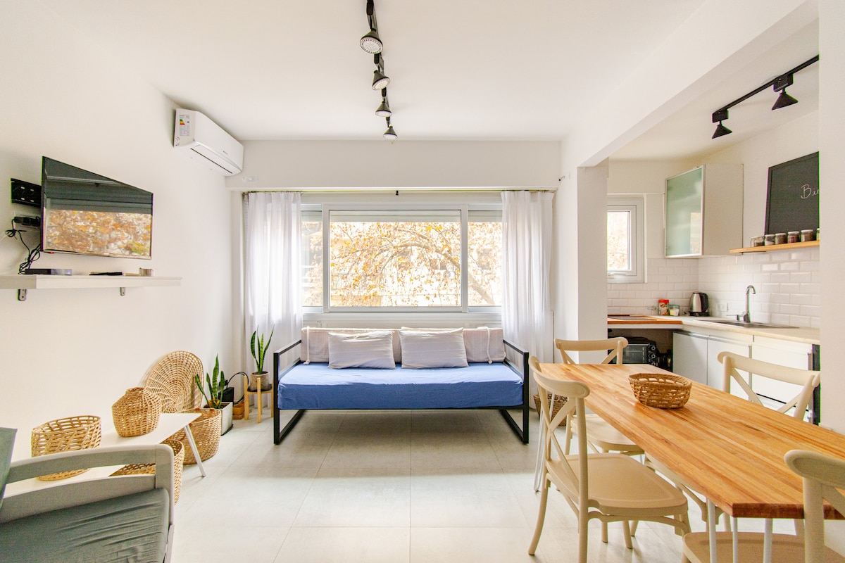 Encantador estudio en Mar del Plata, ideal para 4 personas. Este espacio luminoso y renovado, que admite mascotas, está aprobado por Superhosts por su limpieza. Disfrute de una escapada tranquila junto al mar, con cocina completa, espacio de trabajo y auto check-in. Ubicado cerca de la playa y atracciones locales, es perfecto para familias o parejas que buscan comodidad y estilo.