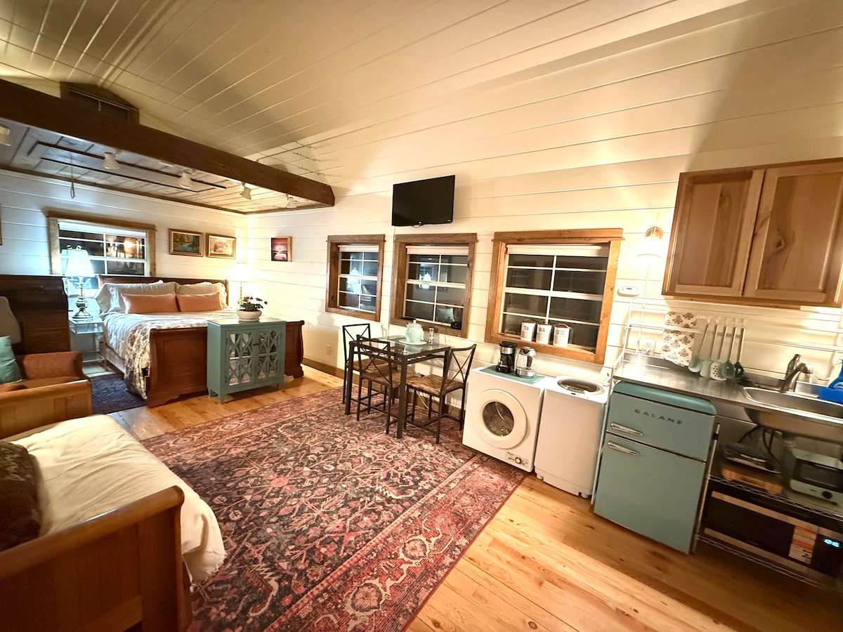 Bem-vindo ao The Bitty Bungalow, um pequeno estúdio encantador, perfeito para aqueles que procuram simplicidade aconchegante com todos os confortos de um lar. Dispõe de uma mini cozinha bem abastecida, um banheiro de luxo redesenhado e uma mini máquina de lavar e secar roupa. A antiga escrivaninha de minha avó e as pinturas a óleo originais do meu avô completam o visual rústico da casa. Embora seja ideal para uma viagem a solo ou a dois, o Bitty Bungalow acomoda até 6 hóspedes, permitindo que famílias ou grupos desfrutem de um retiro modesto nos pinheiros.