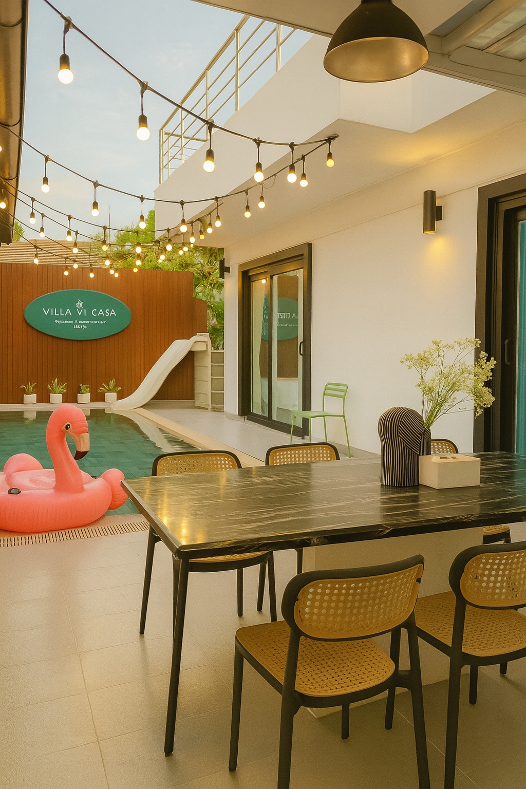 Indulge in the pinnacle of luxury at Villa Vi Casa, a 240sqm 3 minute walk beachfront pool villa in Pattaya designed for discerning travelers. Bask in your private swimming pool surrounded by lush greenery, enjoy entertainment with a state-of-the-art karaoke system and pool table, or host exquisite gatherings at the BBQ area and gourmet kitchen. Relax under the elegant shaded gazebo while reveling in the villa’s tranquil ambiance.