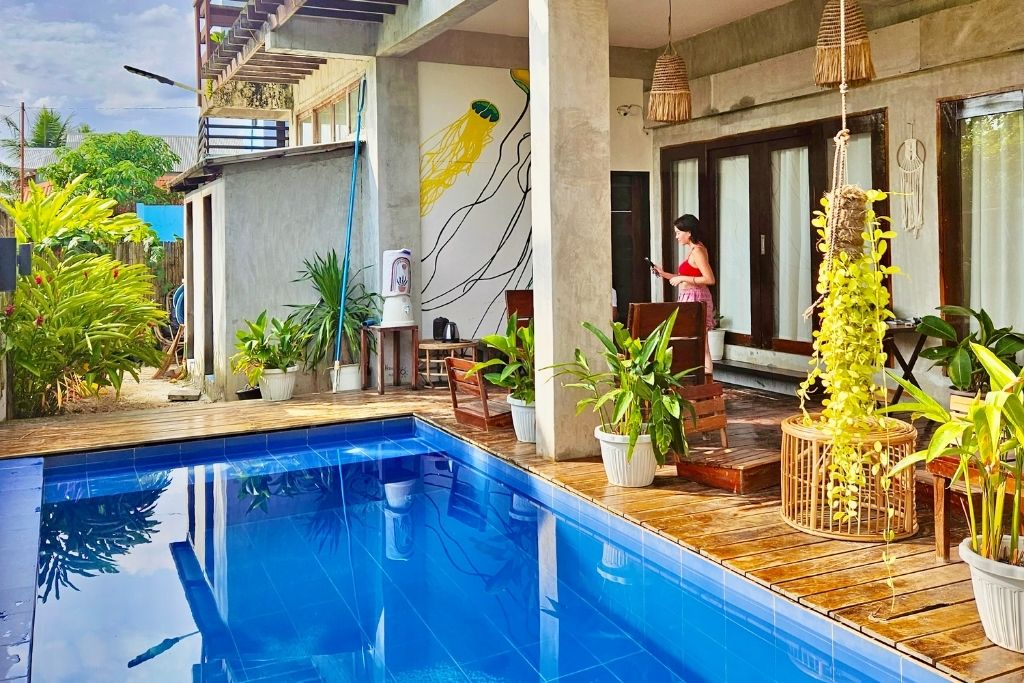 A Pepito 's Homestay está localizada no coração do General Luna, perto de restaurantes e lojas famosas que estão a poucos minutos a pé! Nosso objetivo é encher este lugar com arte local ao longo do tempo e proporcionar uma experiência única e relaxante aos nossos hóspedes. ✧✧ Desfrute do nosso quarto de luxo à beira da piscina com porta deslizante que se abre para a nossa varanda de madeira e piscina de imersão!