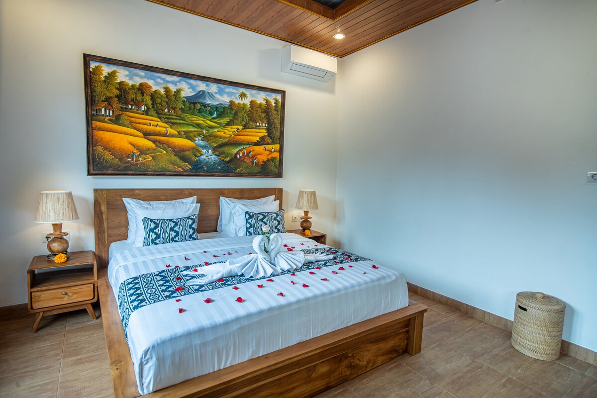 Villa satu kamar dengan kolam renang pribadi di area persawahan, untuk suasana malam sangat cantik dan tenang. properti ini juga baru jadi masih terawat dengan sangat baik.
