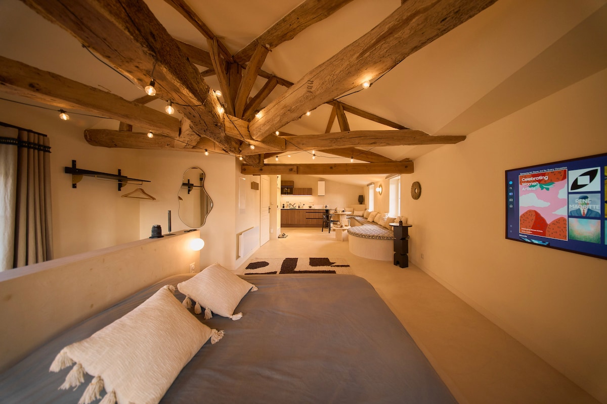 Welcome to the NOMAD SUITE, a luxury suite ideally located in the heart of Cognac city center and Place François Premier. FREE PARKING + COMMON COURTYARD to store your bikes! Enjoy a private jacuzzi accessible all year round, even in winter, and absolute calm! The suite, freshly renovated will allow you to disconnect for a moment. Everything is provided for you, just like in a hotel! ♡🌴