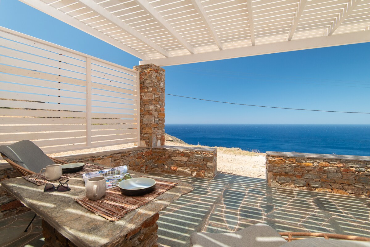 Casa de campo cicládica para até 6 pessoas com vista panorâmica para o mar