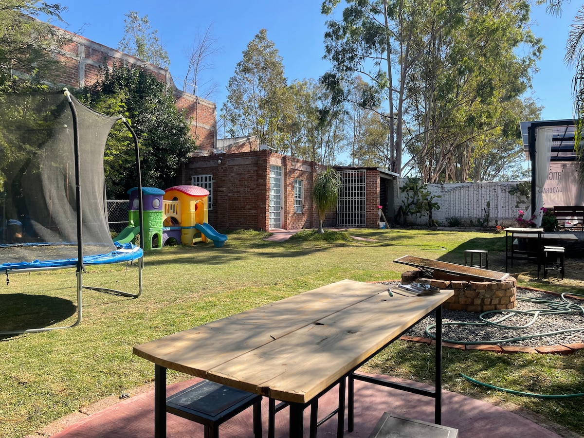 "Las Palomas" House. Entire accommodation, big garden with heated pool, incredible terrace for meals. House with full kitchen, bedroom with two double beds, living room, full bathroom and half bathroom. Los Sauces property is near to Comanjilla. Places near to the property; (by car) 8 Minutes - International Airport of Guanajuato 8 Minutes - Puerto Interior 40 Minutes - Leon, Gto. Downtown 40 Minutes - Guanajuato, Gto. Downtown 25 Minutes - Leon Outlets.