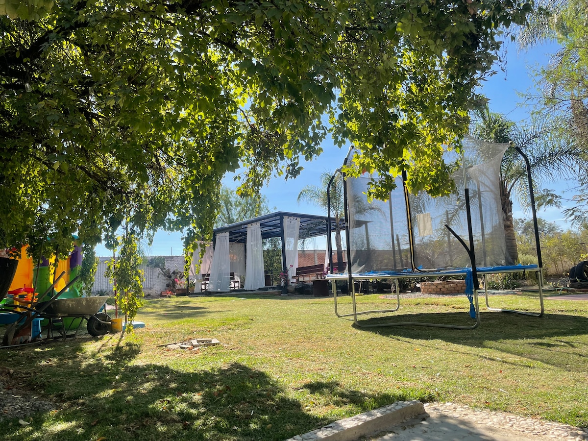 Quinta Chaparrita, House with TOTALLY PRIVATE HEATED POOL. Enjoy nature with your family/friends. Quiet, safe environment, with nearby shops and Fabulous Location! 2 Large Bedrooms + Mezzanine. Parking for 6 cars or more, Equipped Kitchen + Living Room + WIFI COVERAGE. Beautiful Exteriors, 1 full bathroom inside + 2 half bathrooms outside. We are 20 minutes from Cristo Rey, Guanajuato capital and its Mummies. The Outlets of León, and the best of tourism in Guanajuato.!
