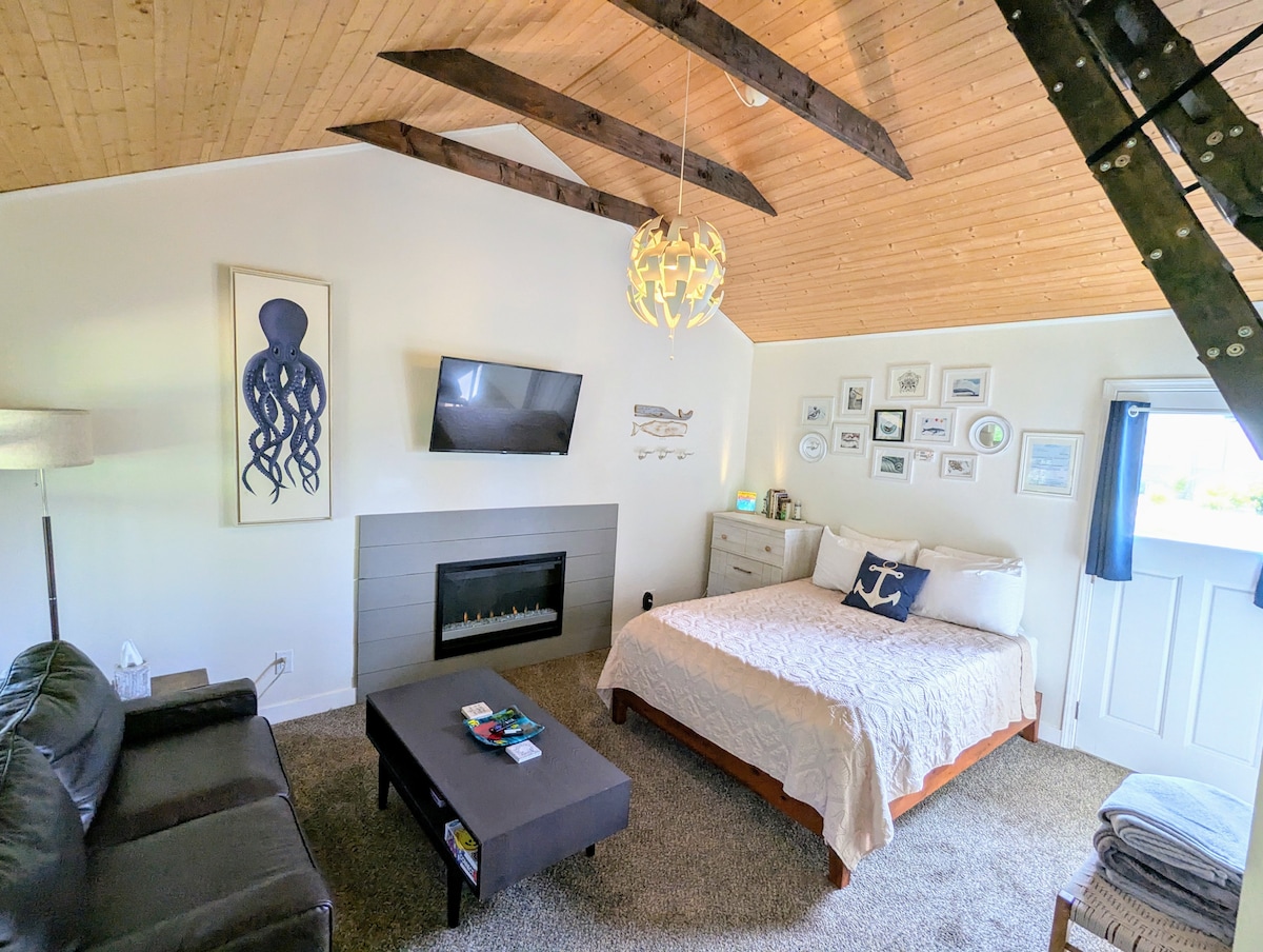 Relaxe neste espaço calmo, elegante e familiar! Rodeado por um paisagismo privado exuberante, este é o lugar perfeito para descansar e recarregar as energias, passar um longo fim de semana com amigos/familiares ou trabalhar remotamente por alguns dias. Faça s'mores ao redor da fogueira sem fumaça Solo Stove ou relaxe na banheira de hidromassagem. Seus filhos e cachorro vão adorar a curta caminhada até a baía arenosa, você vai adorar a curta caminhada até o novo e belo pub da Pelican Brewing!