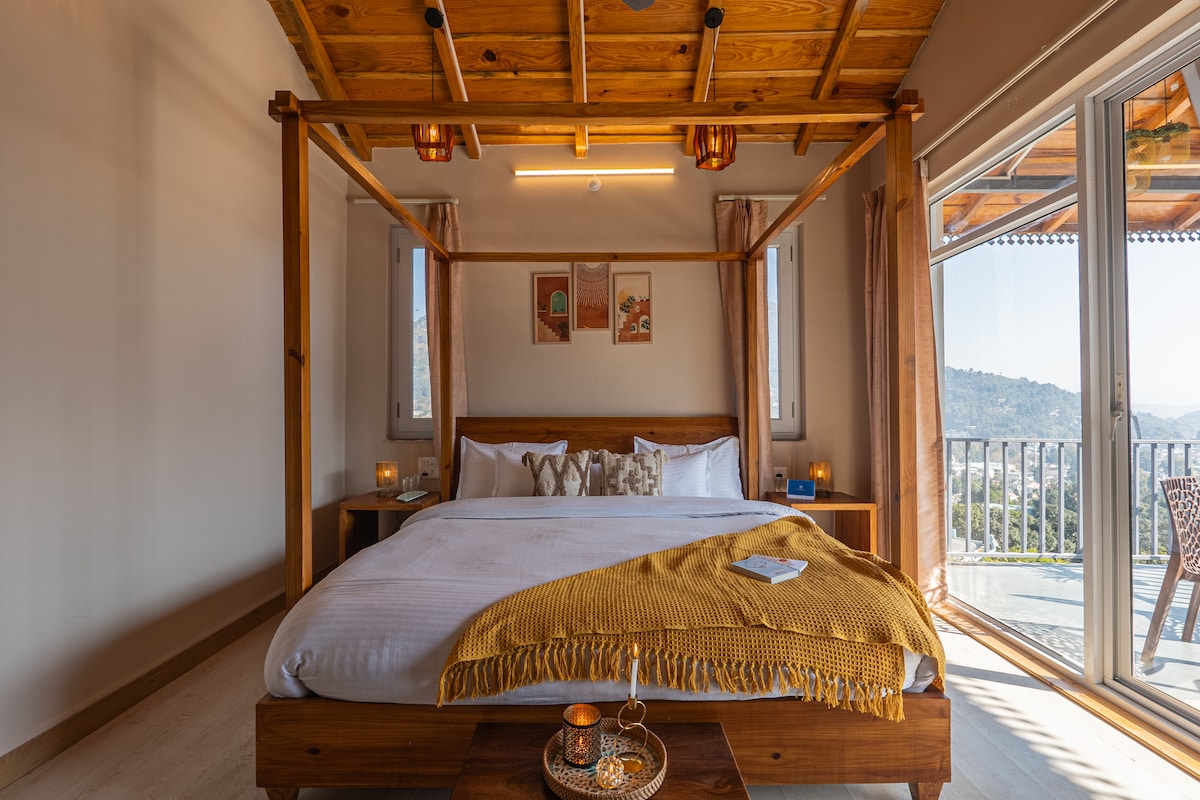 Escape to Serenity: Exquisite A-Frame Villa by Bhimtal Lake Imagine waking up to breathtaking views of Bhimtal Lake, surrounded by nature’s tranquility. Inside Your Haven: • Spacious Bedrooms: Two expansive bedrooms, each with an en-suite bathroom, provide the perfect blend of comfort and privacy. • Modern Amenities: A fully-equipped kitchen and open-plan living and dining area seamlessly merge indoor and outdoor spaces, perfect for relaxation and entertainment.