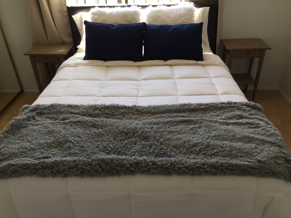 Relaxe neste quarto calmo e elegante em uma das melhores localizações da Ilha Coronado. Caminhe até a praia e parques nas proximidades. Um quarto dispõe de cama king size, armário, banheiro privativo com chuveiro, micro-ondas e geladeira. Garagem própria para estacionar 1 carro. Mínimo de 26 dias por decreto municipal.