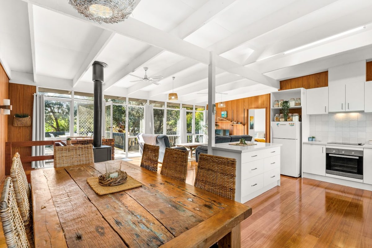 Poet’s Corner House on Phillip Island is a private retreat blending modern comfort with coastal charm. With two queen bedrooms, a bright loft lounge, and a cozy fireplace, it’s perfect for couples, families, or friends. Cook in the gourmet kitchen or outdoors with the BBQ and pizza oven, then unwind in the garden hammock under the stars. Just minutes from Surf Beach, local dining, and the Penguin Parade, it’s an inviting base to relax, recharge, and enjoy “Island Time.”