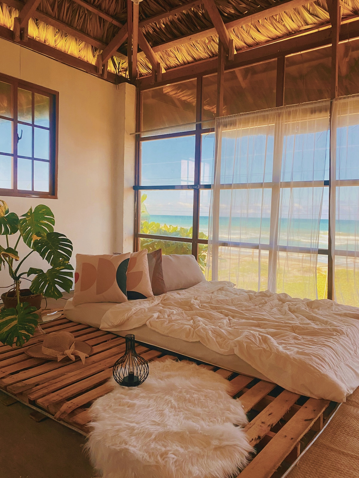 Modern suite in a house located at walking distance to the beautiful beach of Sto. Domingo and 15-minute drive to Vigan City. Surrounded by young native coconut trees spread throughout the property, with a concrete fence and a quiet neighborhood. The room is furnished with a king size bed, quality mattress (not foam), private attached bathroom with hot water, and a quiet refrigerator to chill your favorite beverages and enjoy them on our alfresco-inspired covered porch.
