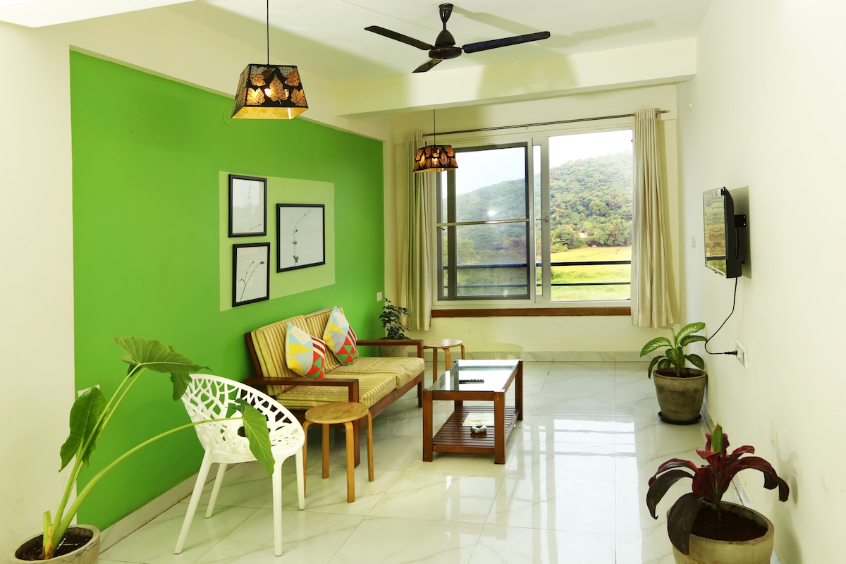 Our 2 bedroom apartment is ideal for your Goa getaway with friends and family. It is located in Siolim in North Goa. The artistically decorated apartment is spacious, with a lot of natural light and is entirely air-conditioned with all modern amenities and a fully equipped kitchen. The gated community has 24/7 security and a swimming pool; and we have provided a dedicated parking space and daily housekeeping. Keep it simple at this peaceful albeit centrally-located holiday home.
