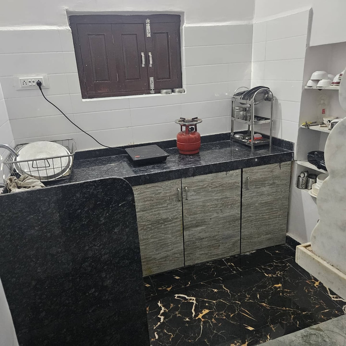 Este apartamento único de 3 BHK em Jodhpur oferece uma mistura de charme e estilo moderno, perfeito para até 6-8 hóspedes. Situado em um local sereno, possui interiores elegantes, uma cozinha totalmente equipada, quartos aconchegantes e uma área de jantar acolhedora. O espaço de estar confortável com uma Smart TV garante relaxamento e conveniência. Ideal para famílias, amigos ou estadias corporativas, esta acomodação oferece uma base perfeita para explorar as atrações vibrantes de Jodhpur enquanto desfruta de seu ambiente distinto e convidativo.