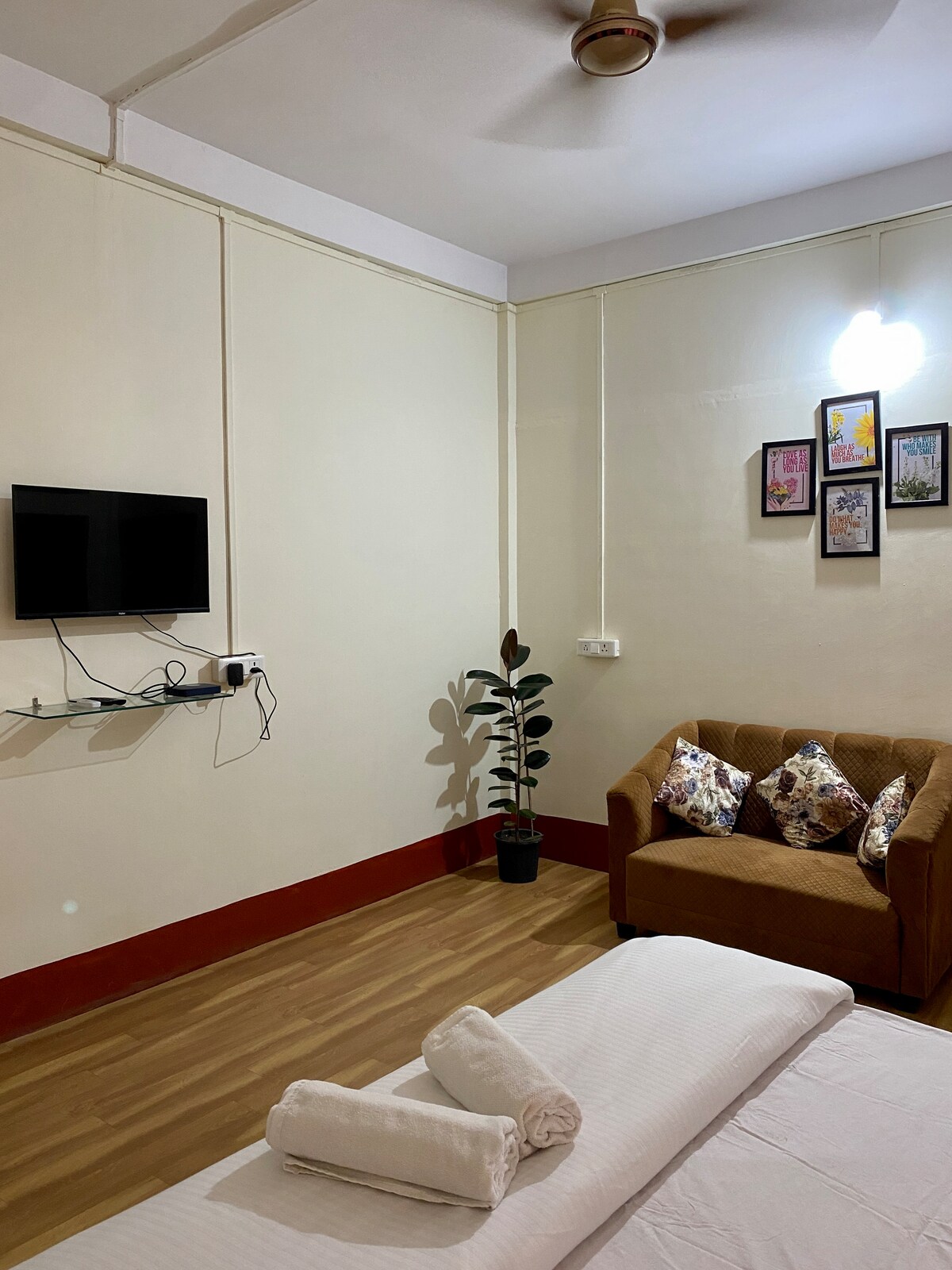 Experimente uma mistura de conforto e praticidade em nossa unidade de 1 quarto com ar-condicionado, cuidadosamente projetada. Localizada no coração de Sivasagar, esta suíte é perfeita para viajantes solo, casais ou famílias pequenas que buscam um ambiente privativo e acolhedor com comodidades modernas. Os destaques da unidade • Totalmente climatizada: mantenha-se refrescado(a) e confortável independentemente do clima. • Quarto espaçoso: conta com um layout aconchegante, decoração contemporânea e iluminação ambiente para proporcionar um clima relaxante à noite.