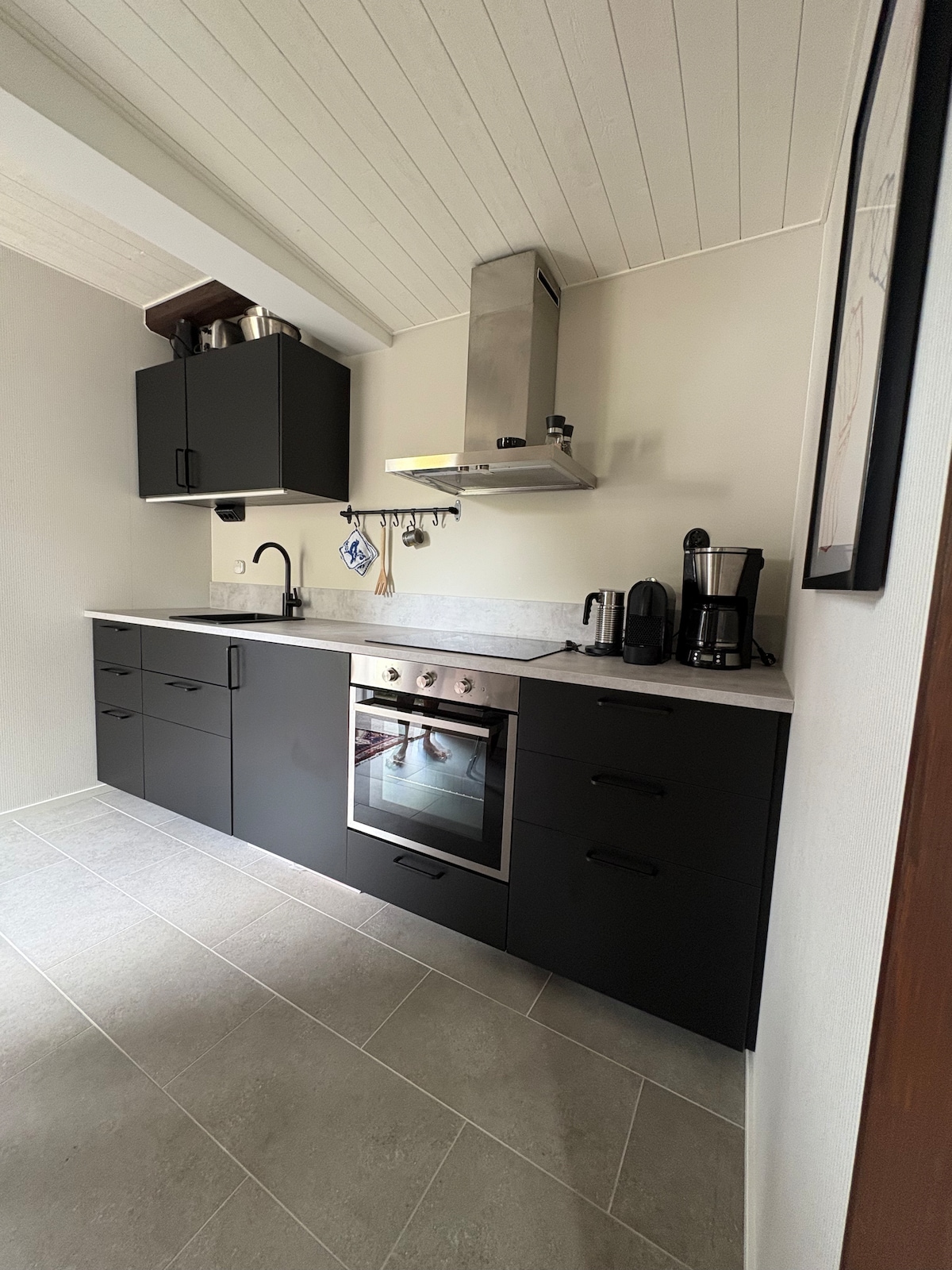 Ni kommer att ha enkel tillgång till allt från detta centralt belägna boende. Mysigt allrum med soffa och bakom en halvvägg döljer sig en 120 säng. Rymligt badrum med wc, dusch, vask, tvättmaskin och torktumlare. Hårfön och kylskåp. Golvvärme i hela boendet. Kaffe och te står framme och går lätt att fixa med vattenkokaren. Handdukar och sängkläder ingår. Finns möjlighet att bädda i soffan om man tycker det blir för trångt för 2 personer i sängen. Lakan finns i skåpet i badrummet.