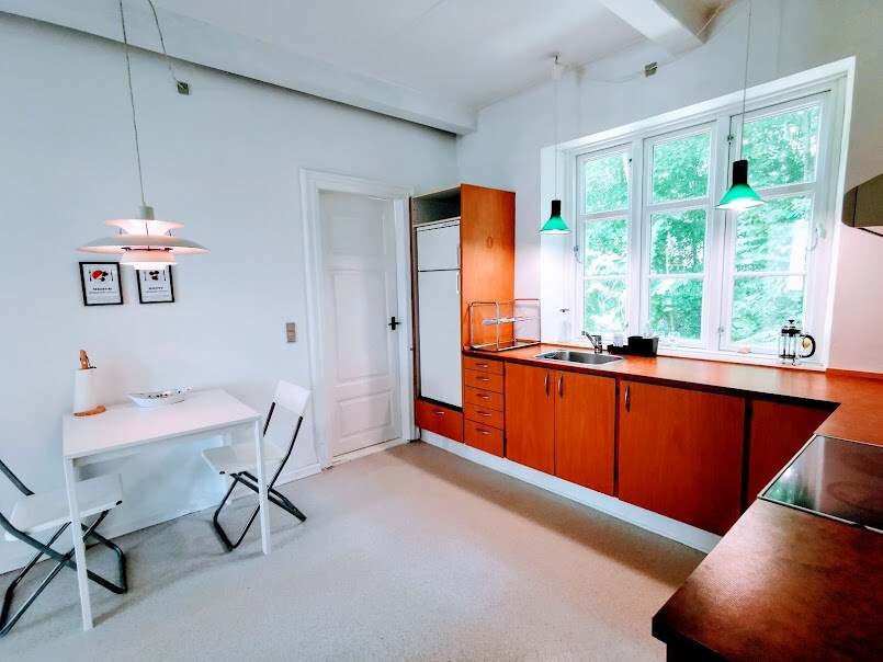 Desfrute de vistas deslumbrantes do Fiorde de Kolding a partir deste apartamento de 110 m² no primeiro andar em uma encantadora vila patrícia branca. Possui 2 quartos duplos, um banheiro grande, sala de estar aconchegante e uma área de cozinha totalmente equipada com acesso a um terraço privativo com espreguiçadeiras. Vivemos tranquilamente no térreo e respeitamos sua privacidade.