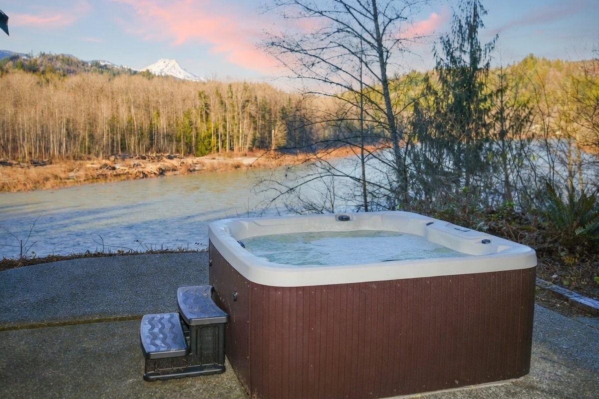 Cabana à beira do rio • Banheira de hidromassagem • Vistas para o Monte Baker