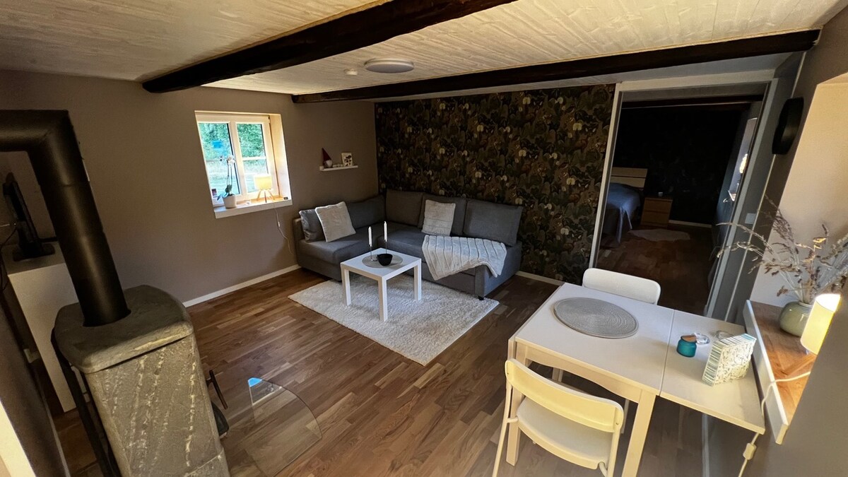 Fique em seu próprio apartamento em um dos comprimentos de uma fazenda Skåne de quatro comprimentos no meio de Brösarp "a porta de entrada para Österlen". Proximidade imediata de todos os confortos da aldeia. Aqui você terá uma boa estadia em dois quartos e uma cozinha com vaso sanitário e chuveiro. Possibilidade de 2 camas extras, ou seja, um total de 6 camas. As camas são feitas quando você chega, ambos os lençóis e toalhas estão inclusos! Idílico se você quiser experimentar paisagens incríveis, pois pode desfrutar do jardim com riachos e ovelhas pastando nas colinas ao redor.