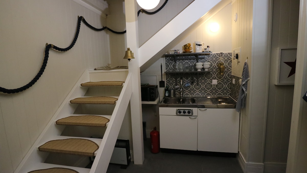 Casa de barco charmosa com pátio privativo e escada de banho
