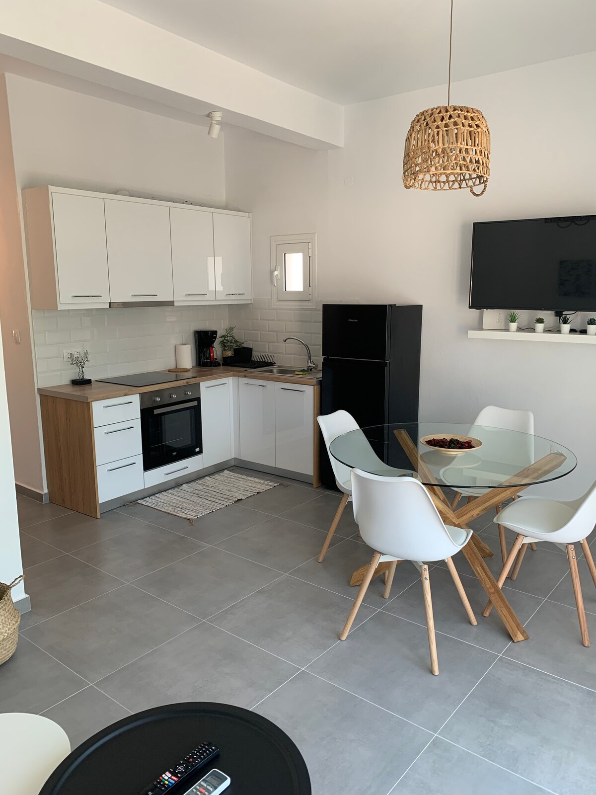 Este encantador apartamento está localizado no primeiro andar de uma casa recentemente renovada, em uma bela área, bem ao lado da praça da igreja de Panagia Limnia. Tem 3 quartos, acomoda 5 pessoas, um banheiro, uma cozinha e um grande terraço no telhado. O telhado é agradável e espaçoso e é perfeito para observar a Lua. O Porto Velho e a Rua Principal ficam a poucos minutos a pé. Há uma área de estacionamento nas proximidades, e a primeira praia e o ponto de ônibus número 4 ficam a apenas 5 minutos de distância.