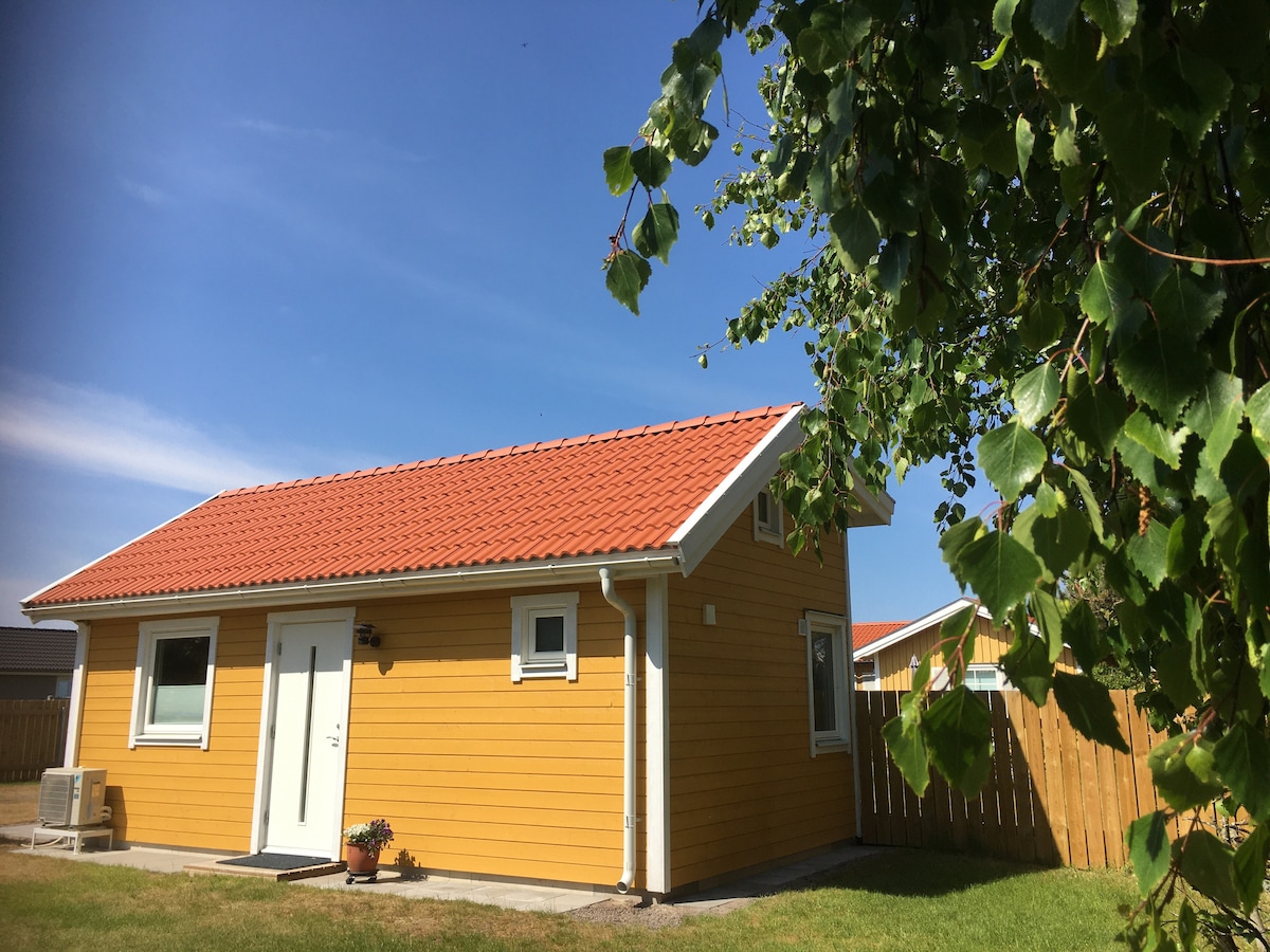 Casa de campo isolada composta por uma sala de estar com cozinha, quarto com 3 camas em um beliche. Banheiro com chuveiro. A casa de campo está equipada com porcelana de porcelana para 4 pessoas. Refrigerador com freezer. Fogão de indução, forno, ventilador, micro-ondas, cafeteira, etc. Entrada privativa. Bomba de calor de ar com a possibilidade de resfriamento. Pátio de madeira e mobiliário de exterior para 4 pessoas. Estacionamento privado ao lado da casa de campo. A casa de campo está centralmente localizada em Mellbystrand, a uma curta distância a pé de uma praia agradável, loja de conveniência, restaurantes, grande centro comercial e trilha de exercícios