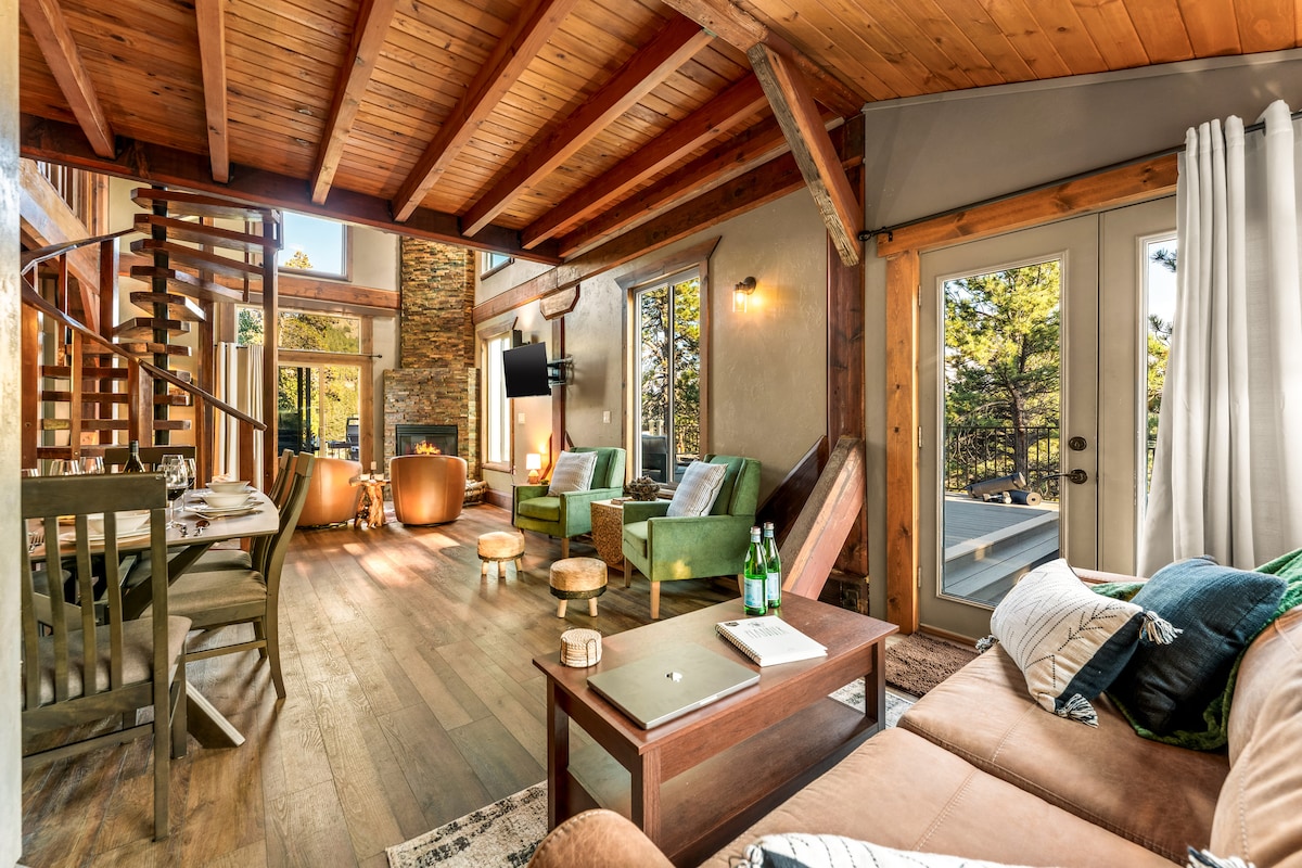 ★★★★★ "A combinação perfeita de luxo e natureza." — Haley 💦 BANHEIROS DO SPA – Chuveiro a vapor + banheira de hidromassagem 🌿 BANHEIRA DE HIDROMASSAGEM e REDE – Mergulhe na beira do riacho ou balance nas árvores 🔥 NOITES ACONCHEGANTES – Lareira, churrasqueira, lareiras e aquecimento no chão ❄️ CONFORTO FRESCO – Ar-condicionado de verão 🐾 ADEQUADO PARA FAMÍLIAS E ANIMAIS DE ESTIMAÇÃO: trilhas, cercadinho portátil, cadeira alta Wi-Fi 📶 rápido: faça streaming, use o Zoom ou desconecte-se 📍 10 min ⭆ Nederland — cidade de montanha e centro de aventura ➳ Respire fundo. Reconecte-se com o que importa. ♡ Toque em Salvar — estadias inesquecíveis em chalés começam aqui