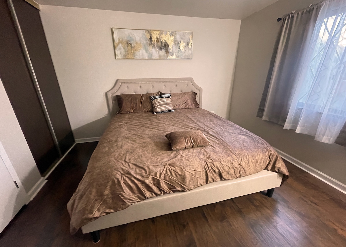 Situada em um bairro tranquilo, nossa bela casa de fazenda de 1115 pés quadrados oferece um design encantador. Ao entrar, você é recebido por uma espaçosa área de estar adornada com decoração de bom gosto e móveis macios. A cozinha é o sonho de um chef, nossa casa oferece brinquedos e livros infantis. Reserve sua estadia em nossa bela casa e experimente uma viagem verdadeiramente inesquecível. Não vemos a hora de hospedar você e tornar sua estadia inesquecível. Bem-vindo ao seu lar longe de casa.