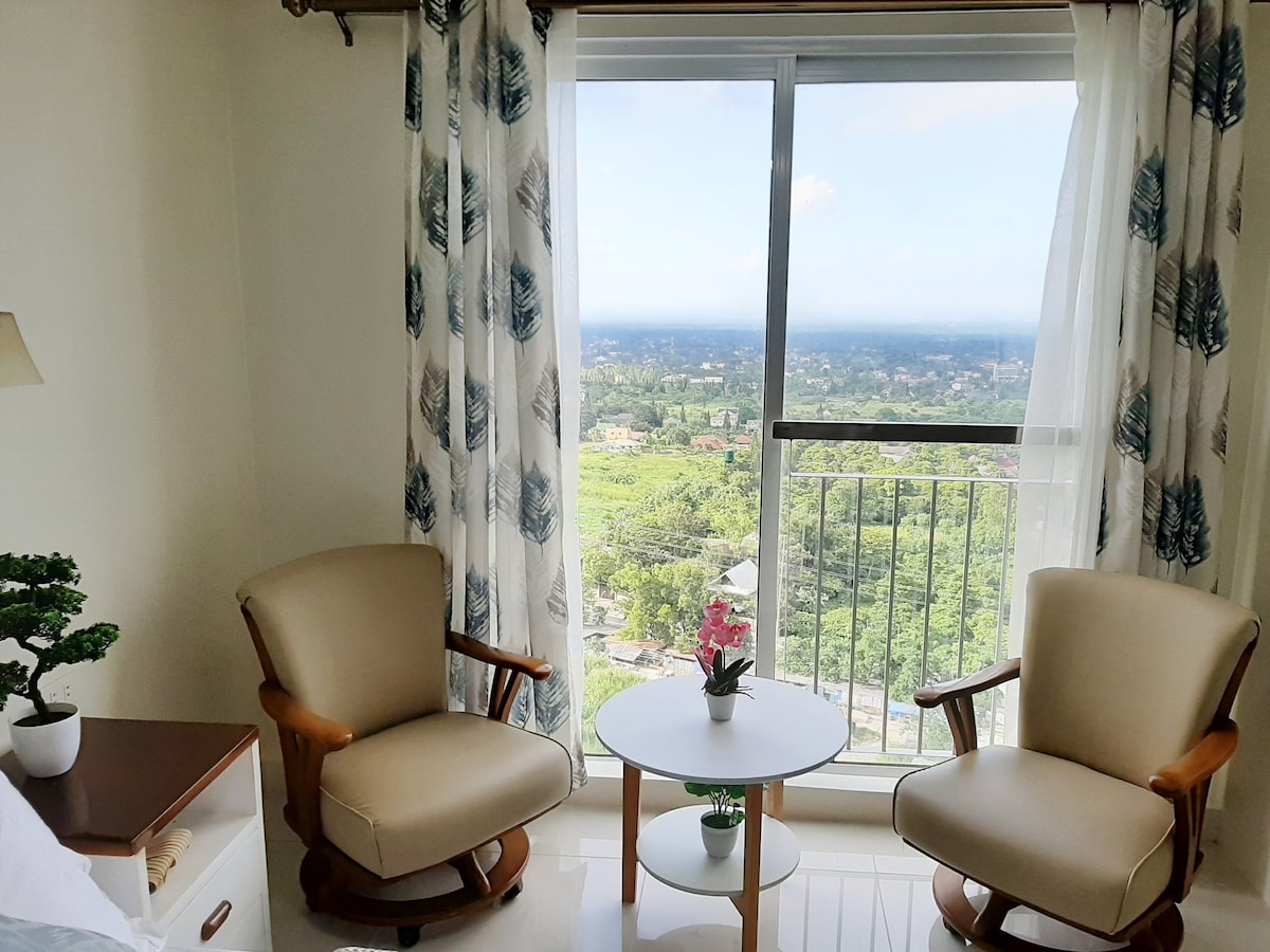 Meu apartamento é uma unidade tipo estúdio de 34 m² localizada perto do Sky Ranch e dos melhores restaurantes da cidade. Tem uma parede de vidro com uma vista perfeita do Lago Taal e do Vulcão. O aluguel da unidade vem com um Wi-Fi (25 mbps), TV com Netflix, home theater (barra de som), ar-condicionado, comodidades básicas (roupas de cama, toalhas, xampu, condicionador, sabonete, pasta de dentes, escova de dentes, loção, chinelos), aquecedor de água do chuveiro e estacionamento gratuito perto da entrada principal do saguão. O número máximo de hóspedes permitido é 4, incluindo bebês.