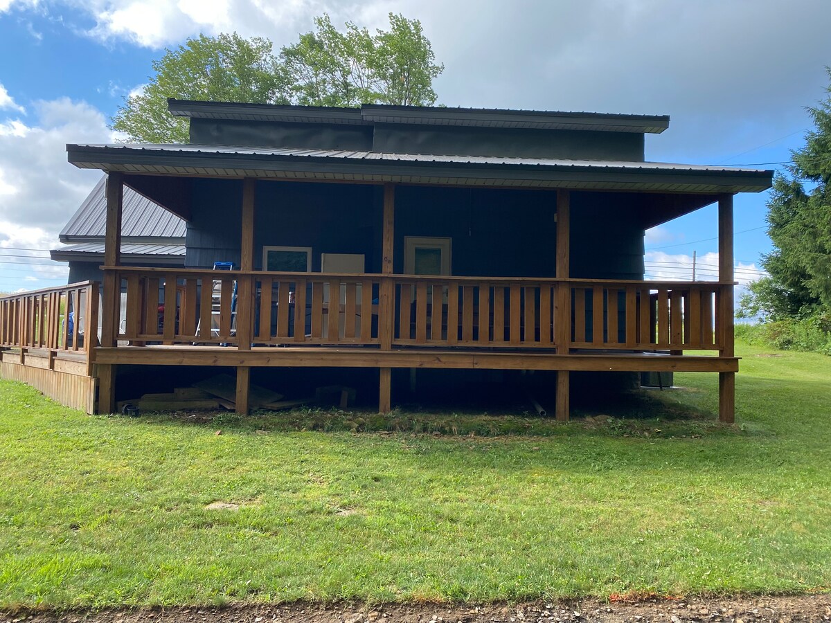 Apartamento de dois quartos bem equipado. Pisos de madeira em todo o apartamento. Todos os confortos de um lar estão incluídos. Há até um loft de brincadeiras para crianças! Ambiente rural com vistas encantadoras para as colinas e lago ao redor. Situado no coração das Montanhas Allegheny. Atrações próximas incluem o Parque Estadual de Allegany (31 milhas), Ponte Kinzua (22 milhas), Parque Estadual Cherry Springs (32 milhas), Ellicottville NY, país de esqui (47 milhas) A poucos quilômetros do local de casamento The Four Sisters.