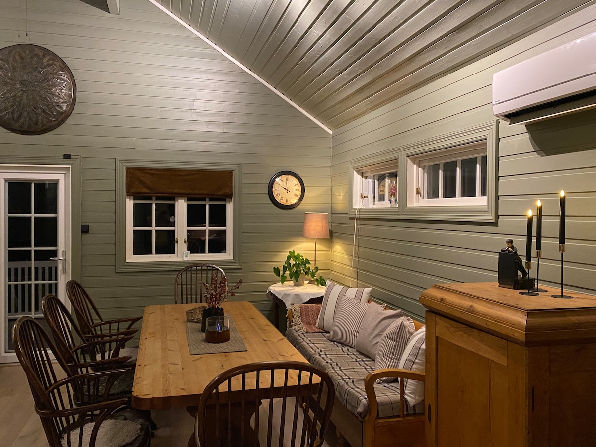 Cabana aconchegante perto da E6. Roupa de cama e toalhas incluídas