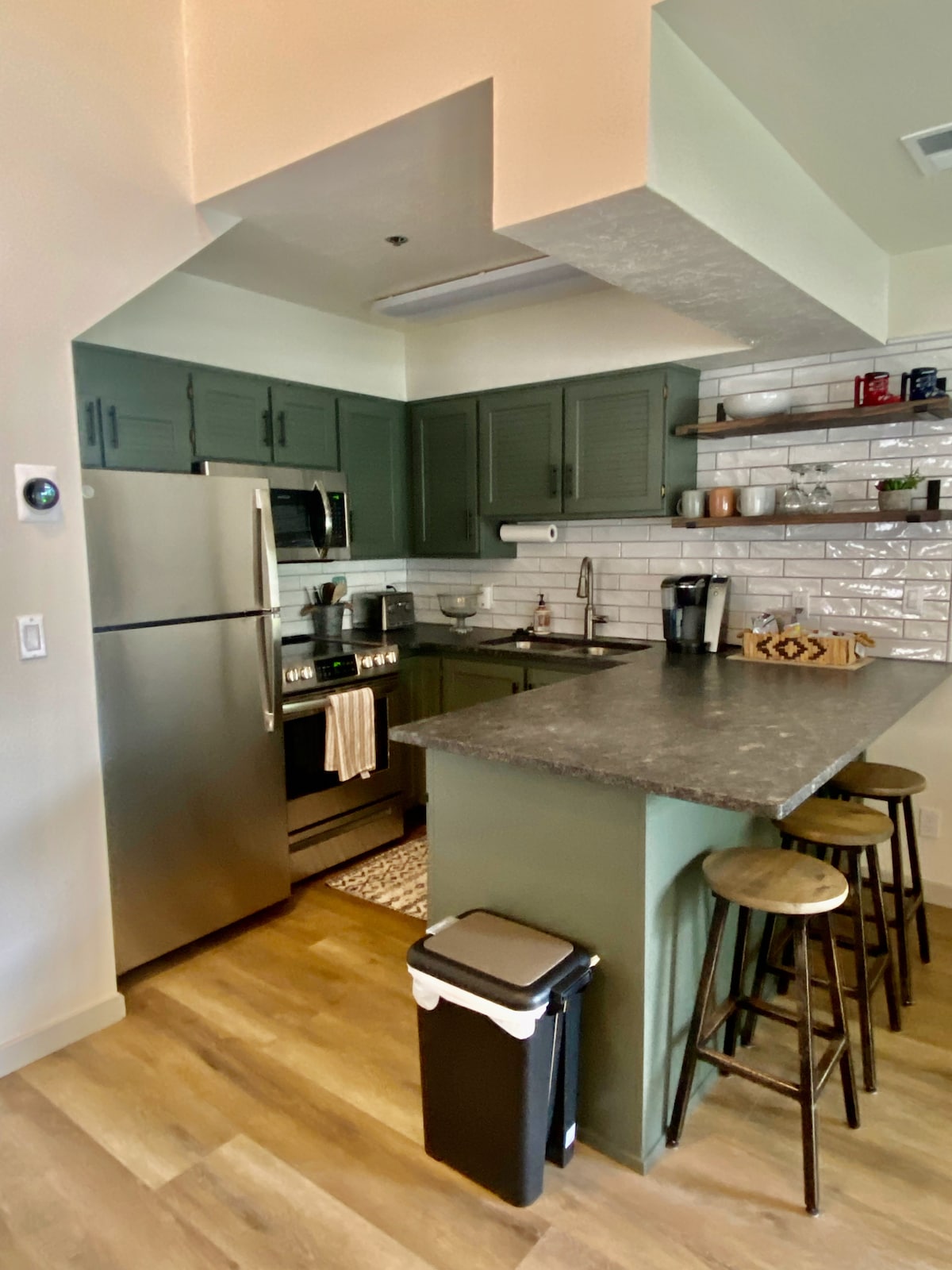 Esta loja de tijolos histórica foi construída na década de 1930, aninhada na Rua 26 (perto da histórica Rua 25). Tem uma história de ser uma boutique, uma loja de ferragens e uma loja de brinquedos amada, mas agora foi renovada em um espaço de estar moderno, mas original. O tijolo e as vigas originais foram preservados, a fim de manter o seu charme histórico, mas também foi atualizado o suficiente para proporcionar uma estadia moderna e acolhedora. Grandes janelas foscas fornecem iluminação de estúdio fotográfico - tornando-se a sessão de fotos perfeita!