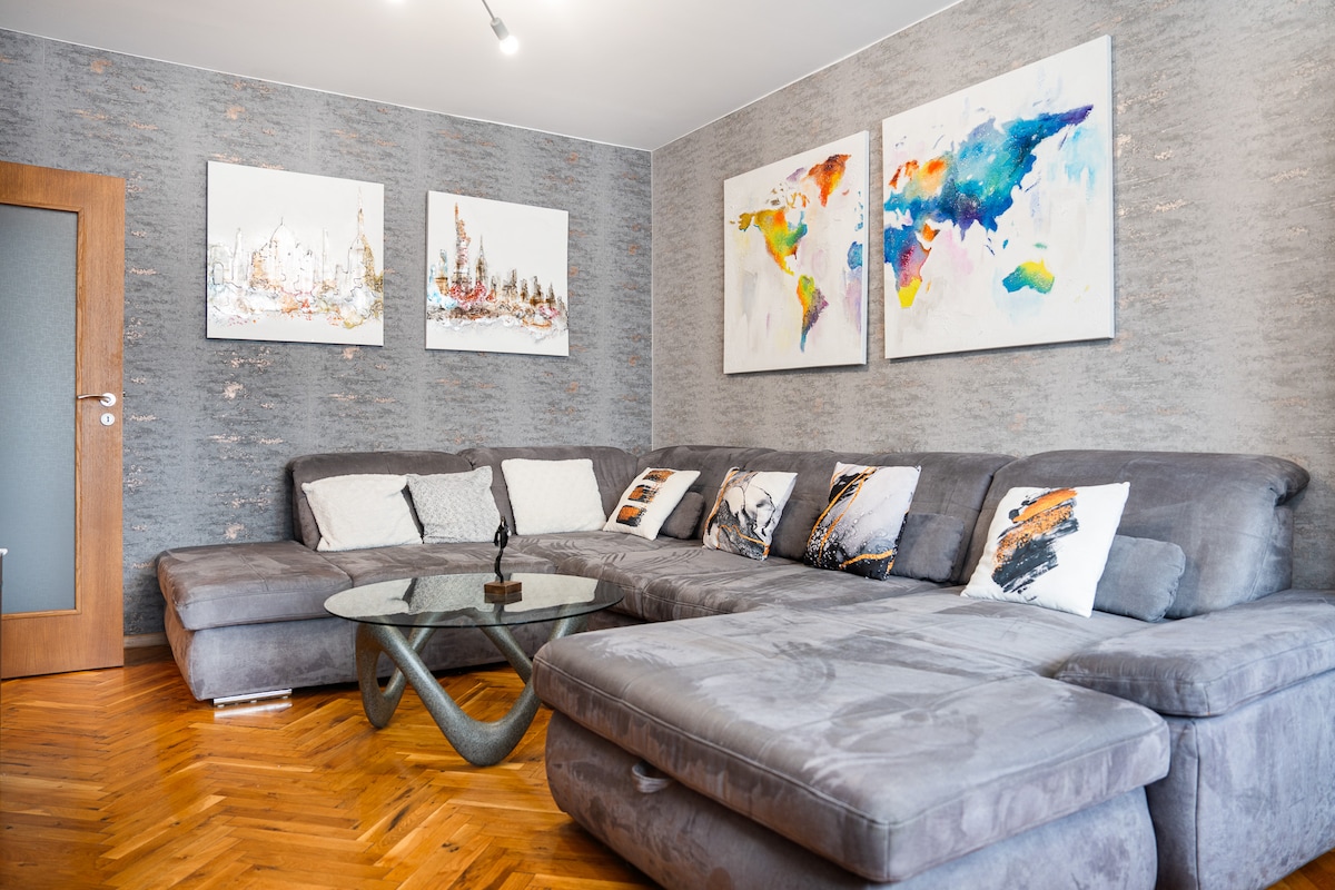 Bem-vindo ao nosso magnífico apartamento recentemente renovado no centro histórico de Sófia! O interior combina a madeira autêntica, piso de madeira e elementos modernos para conforto e sensação de casa. Por favor, note que o apartamento está localizado no 4º andar e NÃO há elevador no edifício. Desfrute da sala de estar iluminada, cozinha, área de jantar e 3 quartos - 2 no primeiro andar e 1 no sótão (acessado por uma escada), acessível com uma escada. Ar condicionado, WI-FI rápido e mesa para trabalho remoto.