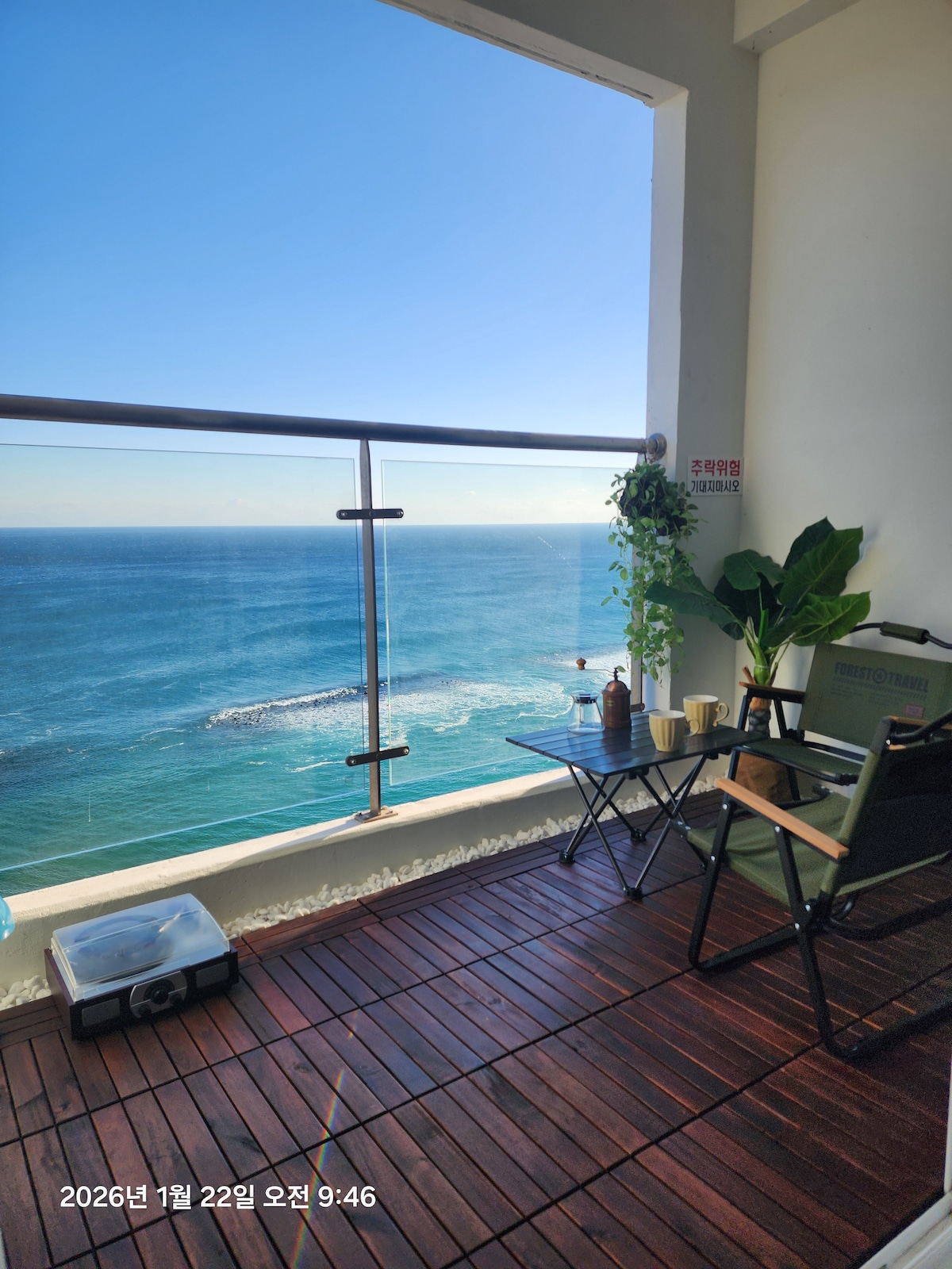 <Ya do Mar de Sokcho> Nascer do sol na acomodação! #Bem em frente à praia!#Vista para o mar da varanda, paisagem noturna#Opção completa#Estadia de uma semana a um mês!