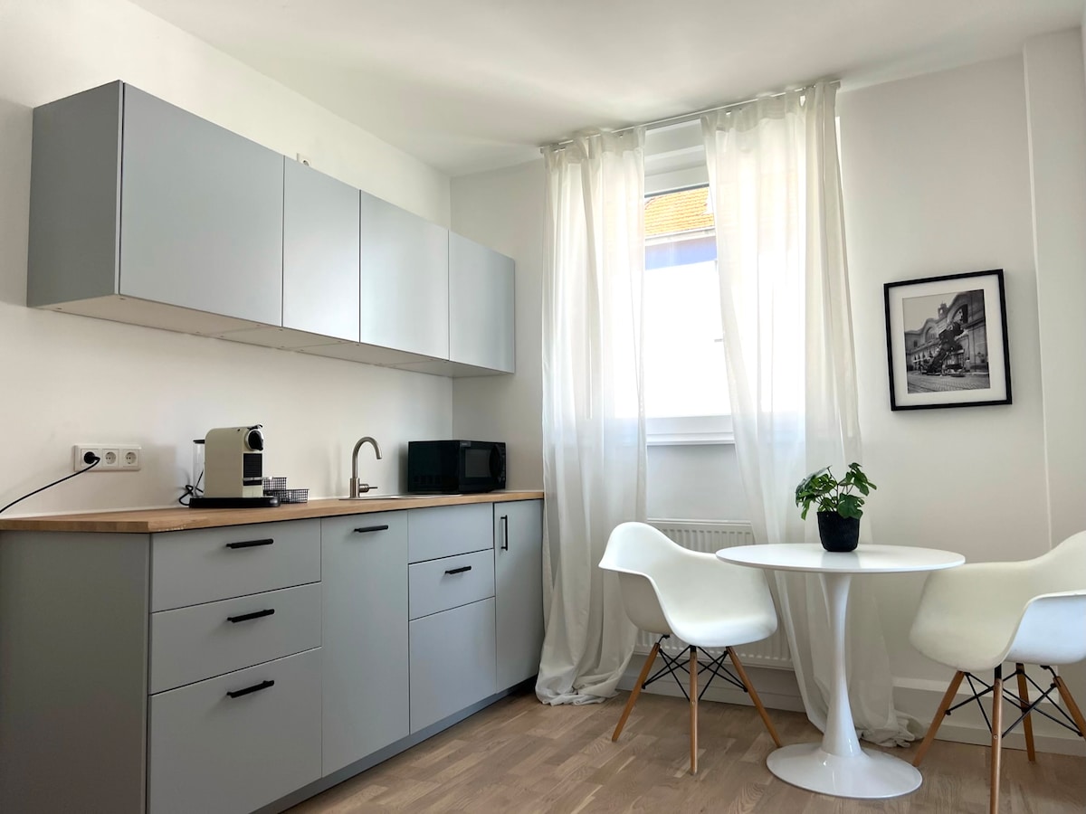 Apartamento em prédio antigo reformado de 1910, 3º andar, pé direito alto, banheiro espaçoso, mobiliário moderno e piso de parquet. O apartamento está localizado no bairro animado de Flingern. Há um grande número de cafés, restaurantes e pequenas lojas nas proximidades. A parada de bonde mais próxima fica a cerca de 150 metros de distância. Fazemos parte do centro da cidade e, portanto, a regulamentação de estacionamento residencial se aplica a nós. Se você estiver viajando de carro, mostraremos como e onde você pode estacionar.