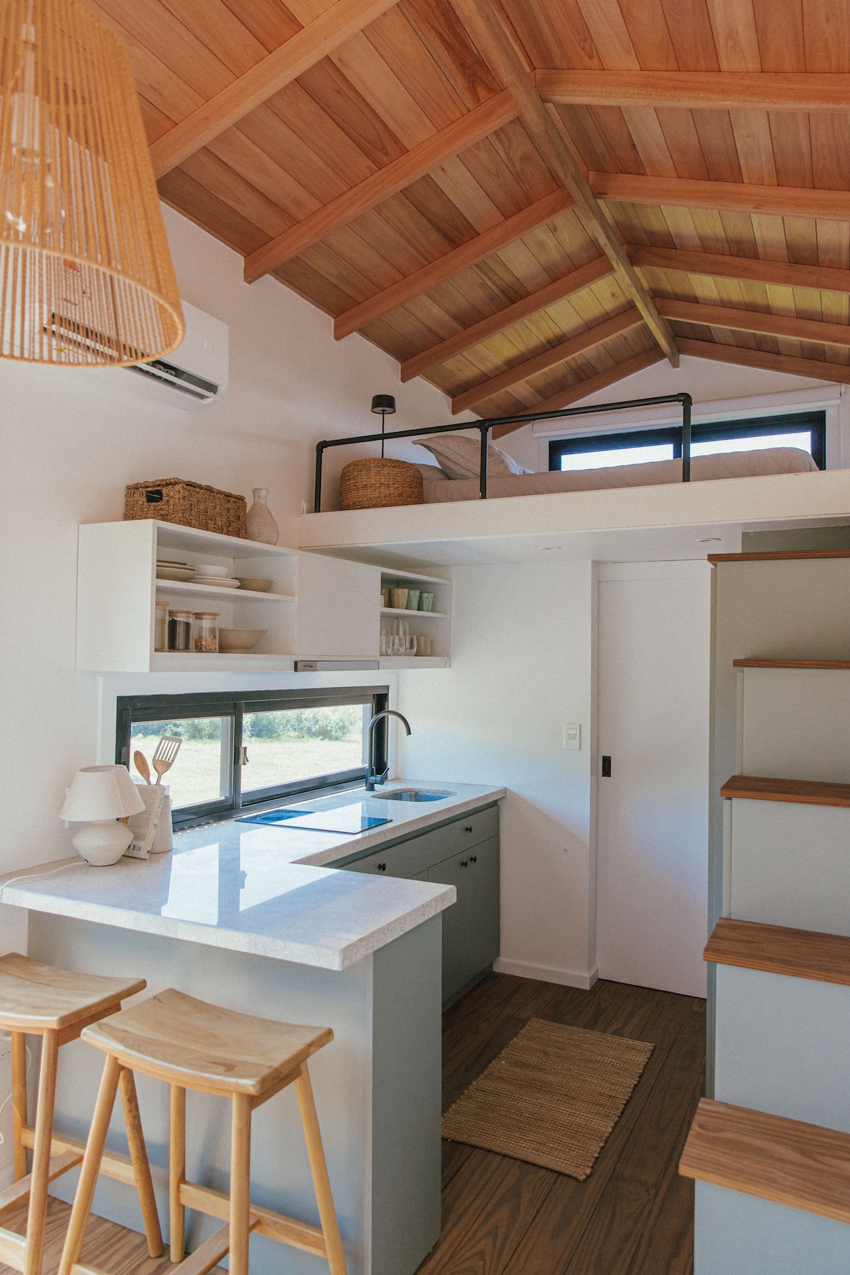 Maktub é uma casa localizada em um lugar com uma energia especial em um ambiente único. A poucos metros da Capela de Nossa Senhora de Lourdes, a casa se eleva sobre o terreno, acessando uma bela vista onde se pode apreciar o relevo e a paisagem diversificados das serras. Da sala de estar, do quarto ou da varanda, você pode desfrutar de um pôr do sol espetacular, onde o sol se põe atrás das colinas.