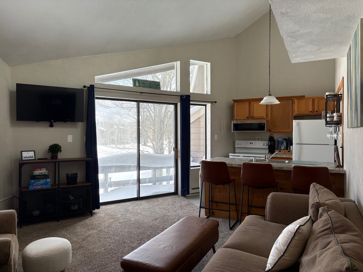 O Mountaintop Hideaway é um retiro favorito da família para aqueles que querem um gostinho do que a montanha tem a oferecer. Convenientemente localizado, a poucos passos da parada de ônibus para as pistas, a 2 minutos a pé da piscina, playground, bocce, basquete, tênis e quadras de pickleball ou jogue uma rodada no campo de golfe! Depois de um longo dia de diversão na montanha, aconchegue-se perto do fogo para relaxar ou apreciar as vistas do convés com vista para o lago. Prepare-se para uma aventura na montanha em nosso refúgio para todas as estações no Hidden Valley Resort!
