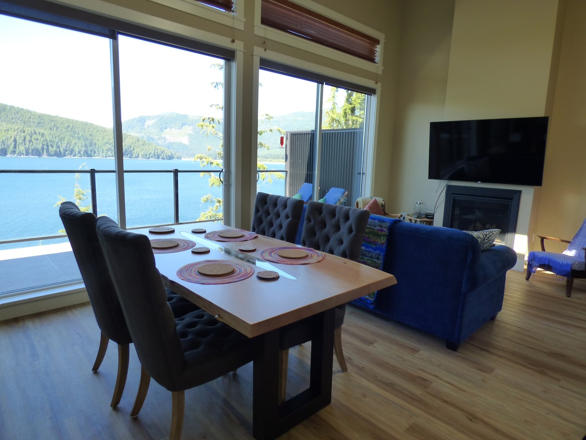 Recém-construído 2 quartos e loft, casa de campo à beira do lago localizado no braço oeste do deslumbrante Lago Shawnigan. Cozinha de conceito aberto e sala. Grande deck com cozinha ao ar livre, área de jantar, churrasqueira e fogueira. Chuveiro ao ar livre, lavanderia completa e nova doca grande. Ótimo para grupos de até 8 pessoas e incrível para famílias com crianças. Brinquedos de praia e alguns brinquedos de água, bem como coletes salva-vidas, estão disponíveis para uso. Acomodação incrível durante todo o ano com relaxamento garantido!