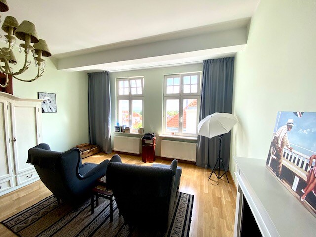 Apartamento no centro de Sopot para até 8 pessoas. Duplex, climatizado (em julho e agosto); o apartamento é composto por uma sala de estar com lareira, sala de jantar, cozinha e banheiro com chuveiro no primeiro andar e 3 quartos, vestiário e banheiro com banheira no segundo andar. Há lojas e restaurantes nas proximidades. A praia pode ser alcançada em 5 minutos. A estação de trem e a Rua Monte Cassino estão a 10 minutos do apartamento.