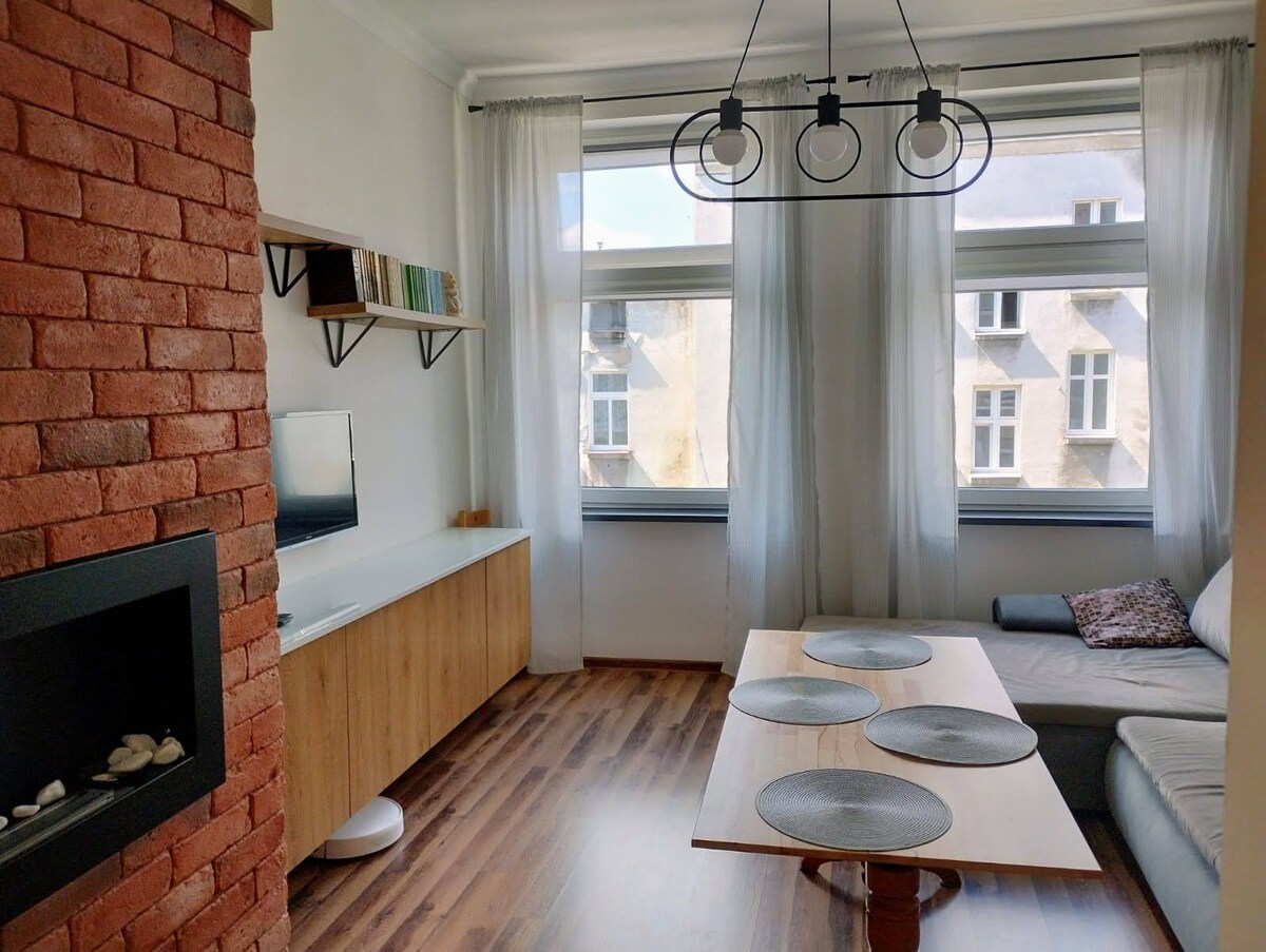A unique apartment with a fireplace in the attic. We created this place just for ourselves, originally with paintings, books, a collection of cacti and handmade ceramics. We took care of comfort - 2 armchairs and a sofa, a fireplace and lots of pillows. There is also an equipped kitchen, a table with 4 chairs, a work desk and fast fiber-optic internet. Nearby there is a pizzeria, bar, shops, 5 min. walk to the Gdańsk Oliwa station.